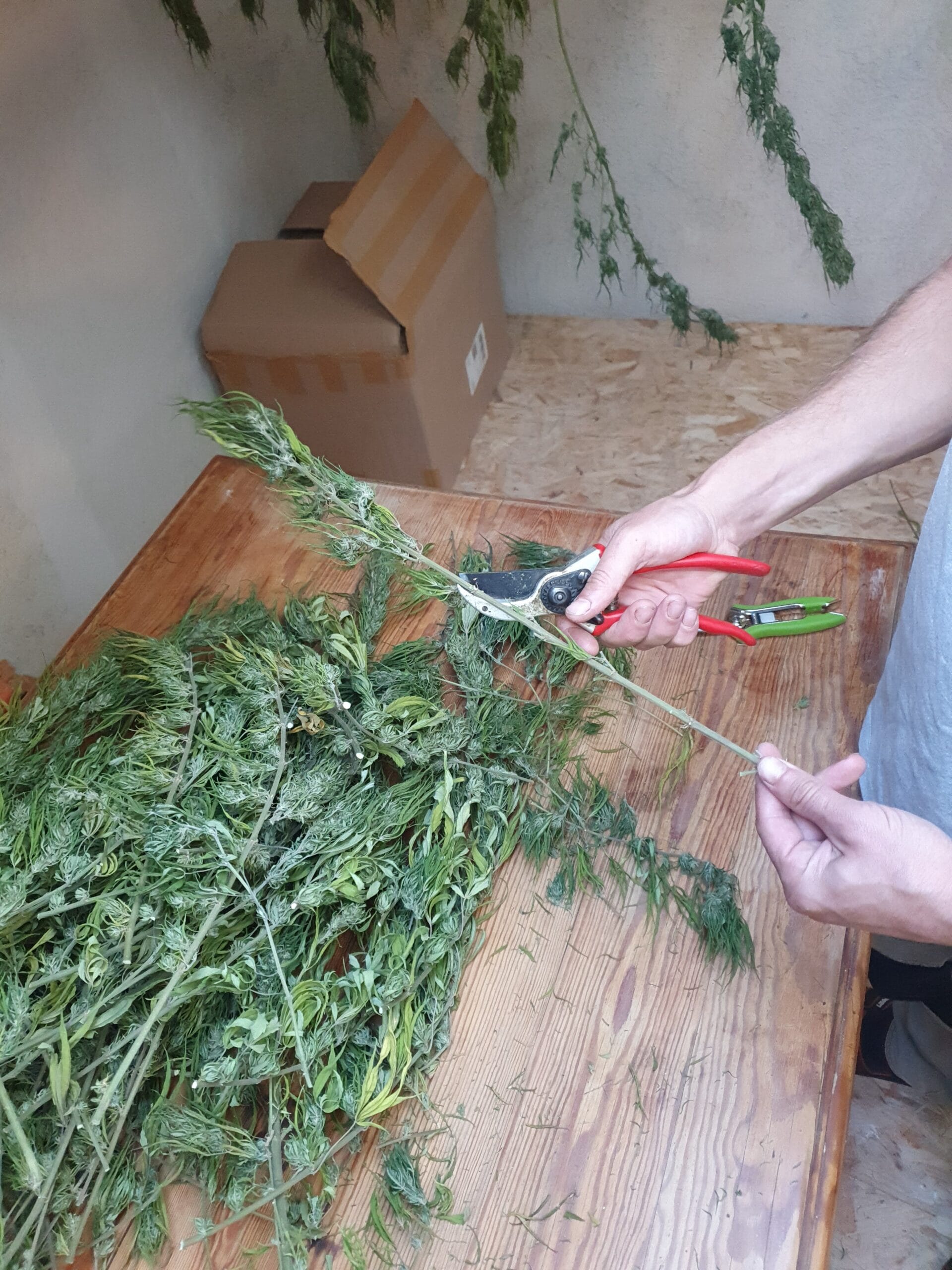 La récolte s’est étalée sur plusieurs semaines, mais le plus compliqué a été de gérer les différents moments de rush, lorsque de nombreuses plantes étaient prêtes en même temps. Il a fallu tout organiser d’un coup : la coupe, le transport et le séchage. Et comme notre séchoir n’est pas très grand, nous avons dû terminer la manucure des premières plantes avant de pouvoir nous occuper du lot suivant. Heureusement, pour la fin de saison, nous avons pu compter sur une Berlingo bien remplie pour transporter les plantes, ce qui nous a changé la vie par rapport à notre petite brouette habituelle. Au final, après ce véritable marathon, l’objectif fixé en début de saison — 7 kg de fleurs séchées — a été atteint. Une belle récompense pour des mois de travail patient et minutieux..